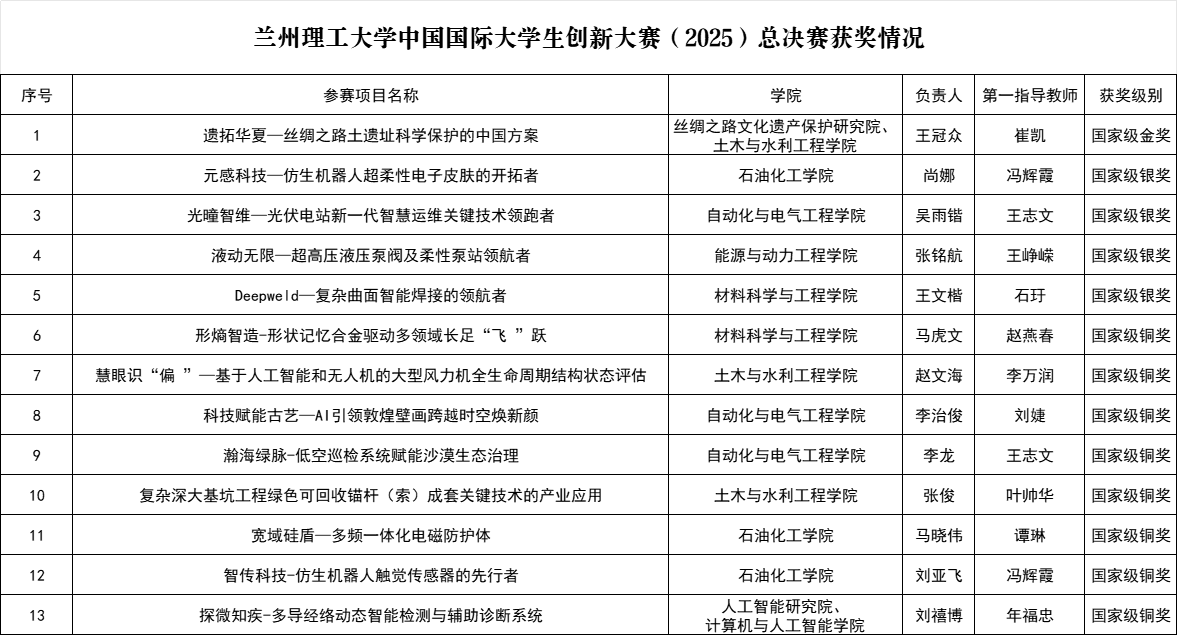 本次大赛启动以来,学校党委高度重视,多次召开专题会、动员会、推进会等具体指导工作开展。2025年校赛共有12516个项目、19503名学生参加,学生覆盖面进一步扩大。今年7月,我校在甘肃省赛中获得41金,金奖总数和获奖总数均位列全省高校第一。备赛过程中,创新创业学院深入挖掘、重点培育、持续打磨参赛项目,先后举办了20余轮次的各类项目训练营,全方位提升参赛项目的综合竞争力和学生创新创业能力。教务处、研究生院、国际教育学院、校团委、后勤管理处、财务处等单位通力协作,为比赛积极提供各类条件保障。
