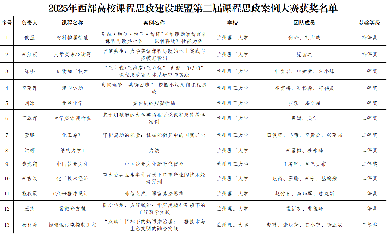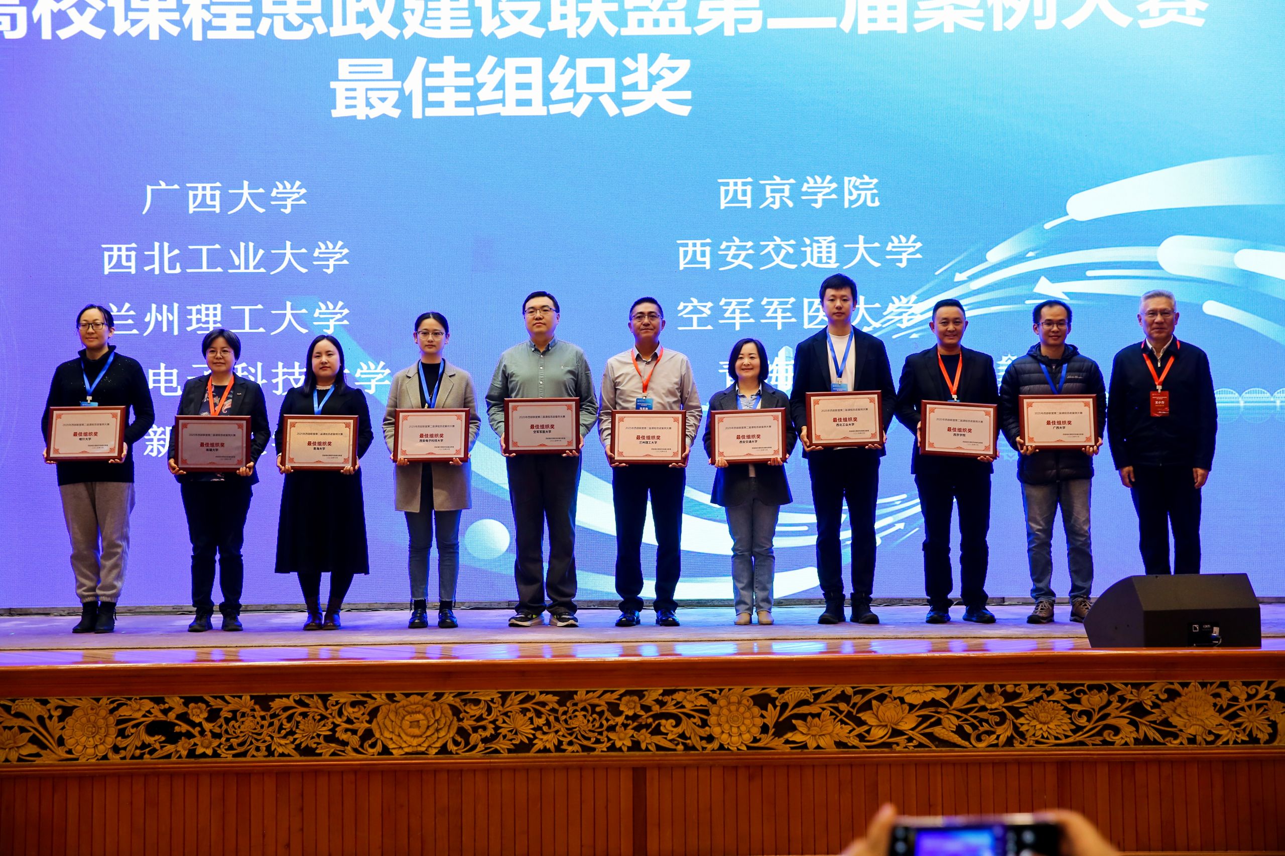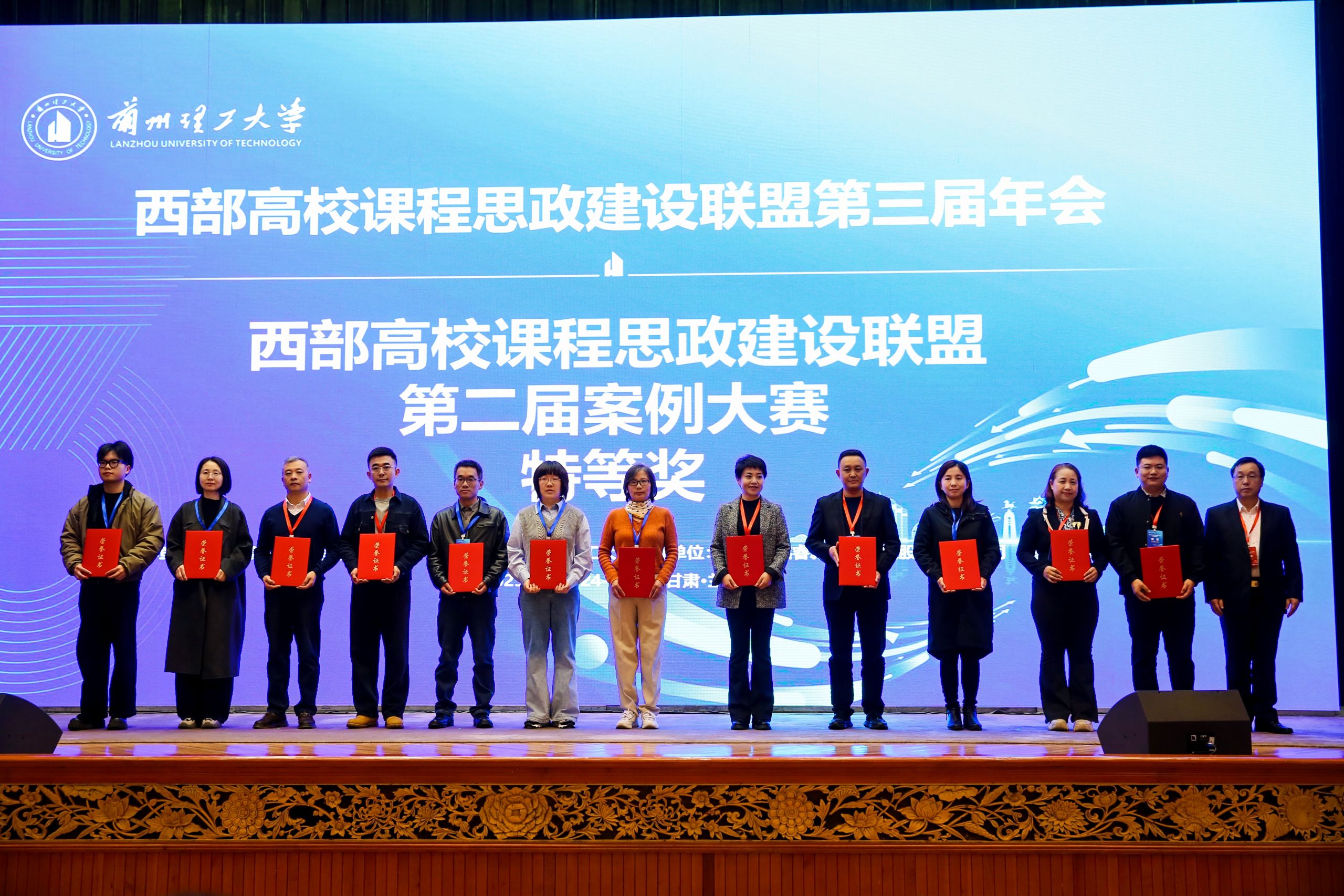 会议期间举行了颁奖仪式。大赛共评选出315项获奖案例,涵盖理、工、文、医、农等多个学科领域,全面展示了西部高校在课程思政教学改革中的创新实践成果。我校申报的课程思政案例获特等奖两项,一等奖三项,二等奖八项,学校荣获“最佳组织奖”。