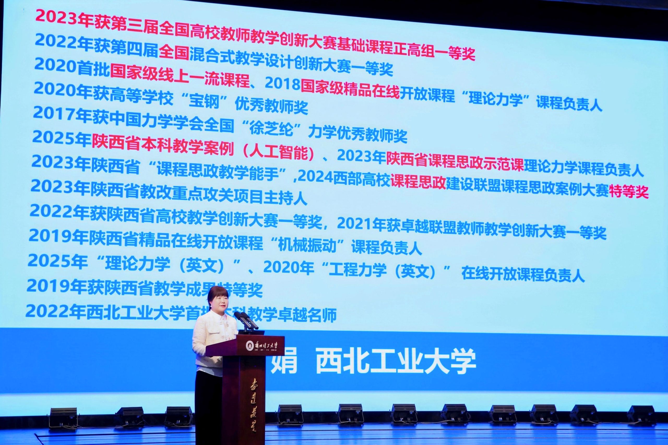 西北工业大学张娟教授以《DeepSeek时代的AI课程建设与创新教学设计》为题展开分享,她结合国家级一流课程“理论力学”建设实践及全国教学创新大赛获奖成果,以鲜活案例阐释通用AI时代背景下,如何依托数字化教学资源实现教学设计迭代升级、教学互动效能提升,成功构建“素质培育、技术赋能、教学融合”三位一体的育人路径。其中,“四堂融合”教学模式为学校在AI时代的教学革新提供了可借鉴的卓越范式。