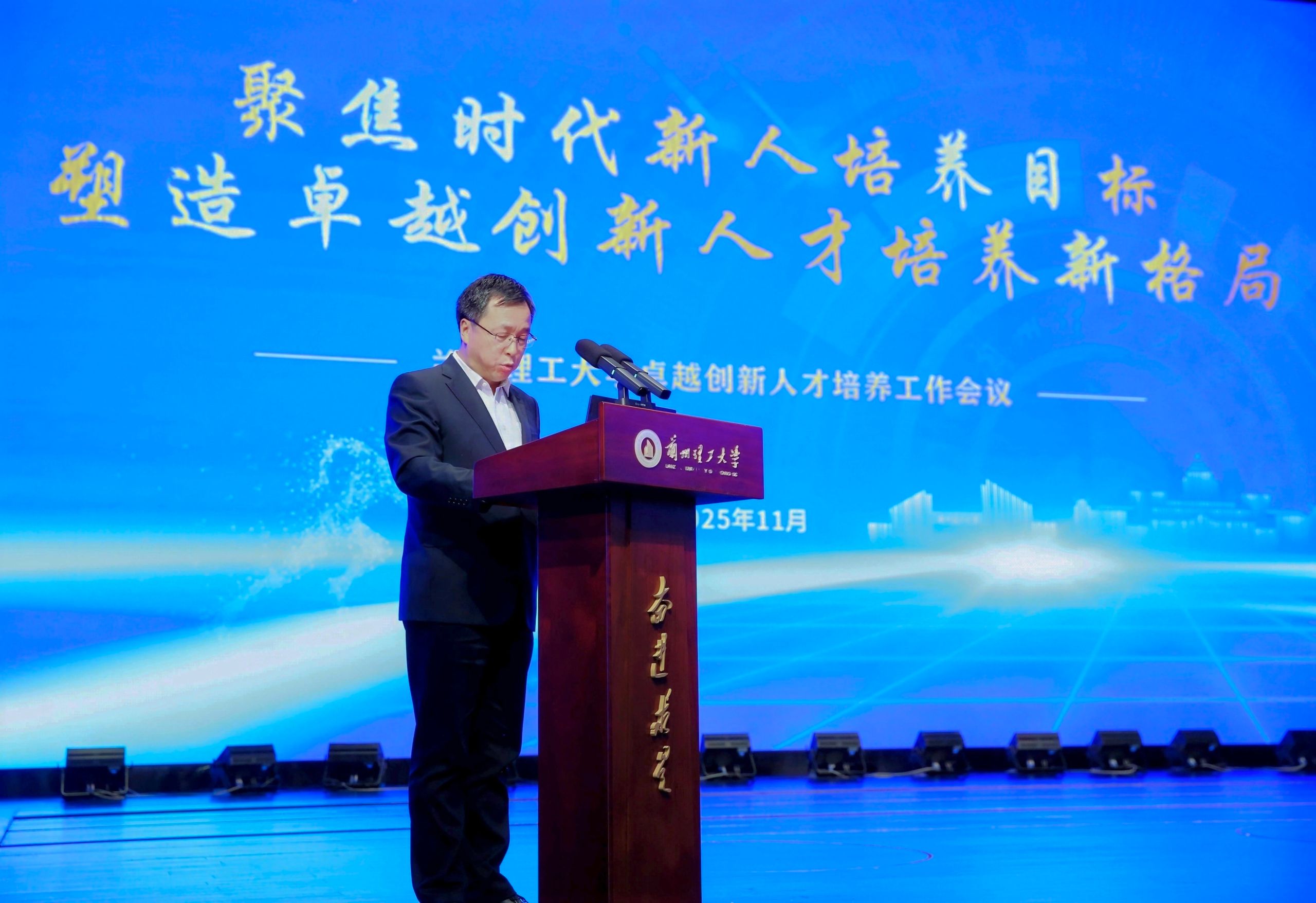 韩建平作总结讲话。他表示,本次会议内容翔实、视野开阔、见解深刻,四位专家的报告兼具理论前瞻性与实践指导性,为学校下一阶段系统推进卓越创新人才培养工作注入了新思想、明晰了新路径。并安排了第三阶段工作任务,要求各学院立足学科特色,深度融合专家先进理念与自身育人实际,组织专题研讨并制定切实可行的实施方案,学校后续将统筹召开专题交流会议,推动经验共享、成果转化。他号召全校教职工进一步凝聚育人共识,将卓越创新人才培养的宏伟蓝图转化为建设特色鲜明国内一流大学的生动实践,为服务国家重大战略需求与区域经济社会高质量发展贡献兰理工力量。(图/文:刘锐强;审核:刘微容)