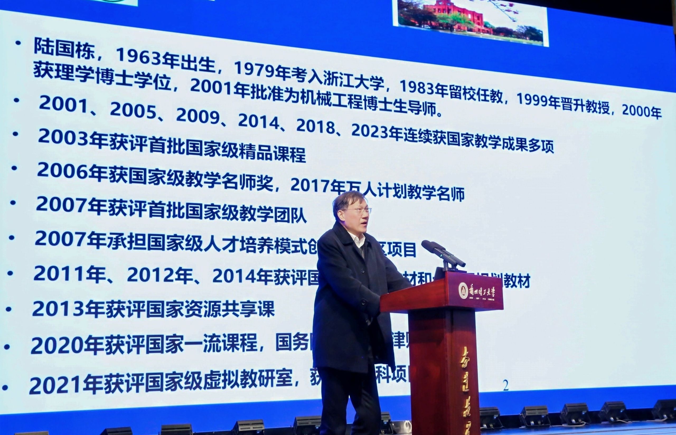 在专家报告环节,国家级教学名师、浙江大学陆国栋教授以《创新人才培养路径探寻》为题作专题报告。深度阐述了“一创四强”(重创新、强金课、强实验、强交叉、强组织)人才培养体系的核心要义,系统介绍了“校-企-校”国际化协同育人、新工科跨学科融合等创新路径,并聚焦“两强一高”金课建设标准、三维实验教学模式及基层教学组织重构等关键实践,分享了可复制、可推广的高水平育人经验。
