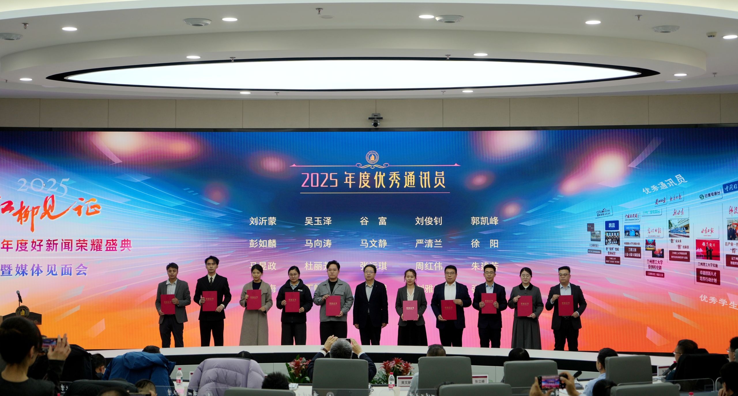 吕文英为吴玉泽等荣获2025年度优秀通讯员称号的代表颁奖。
