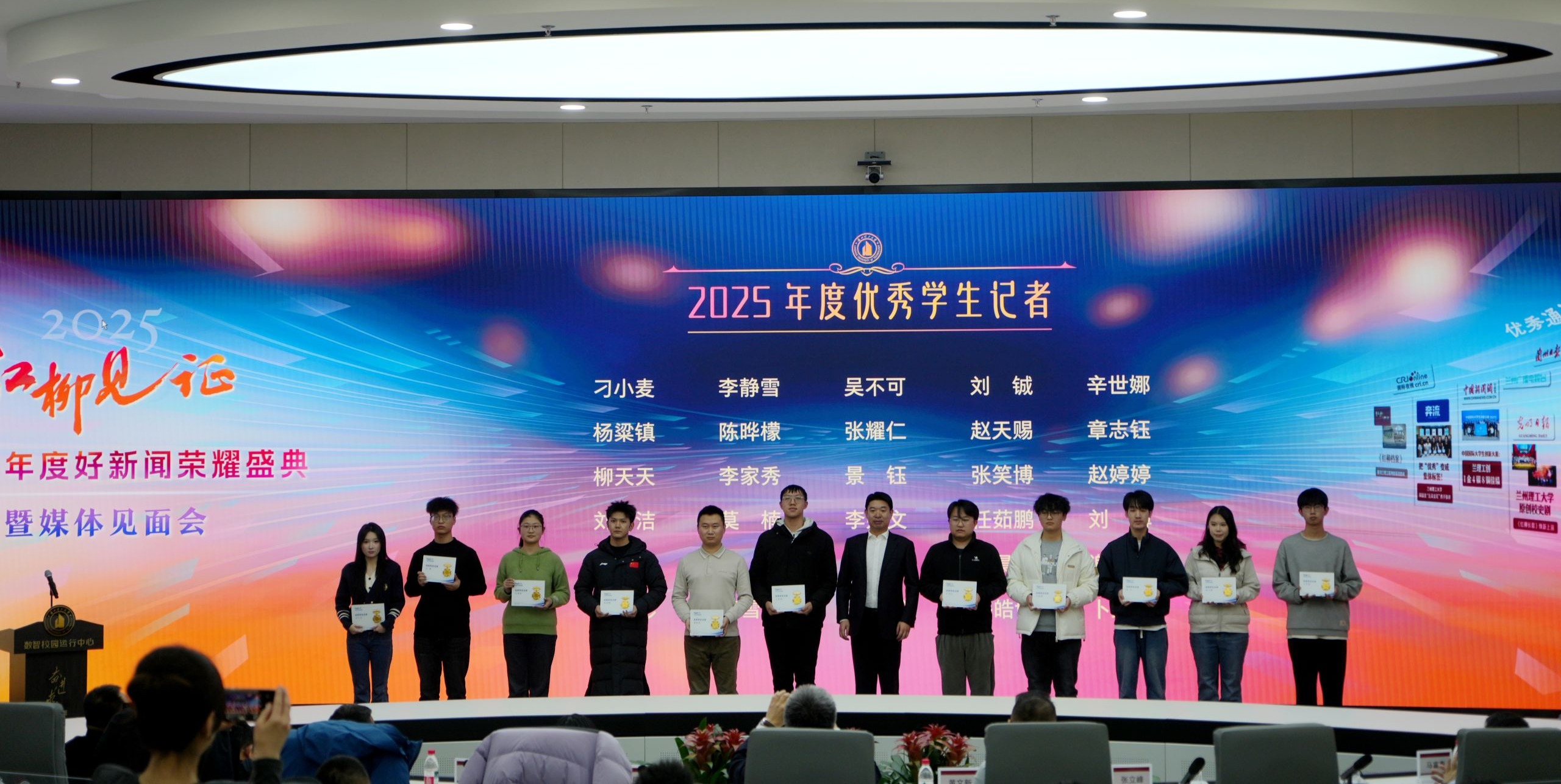 张立峰为刁小麦等荣获2025年度优秀学生记者称号的代表颁奖。