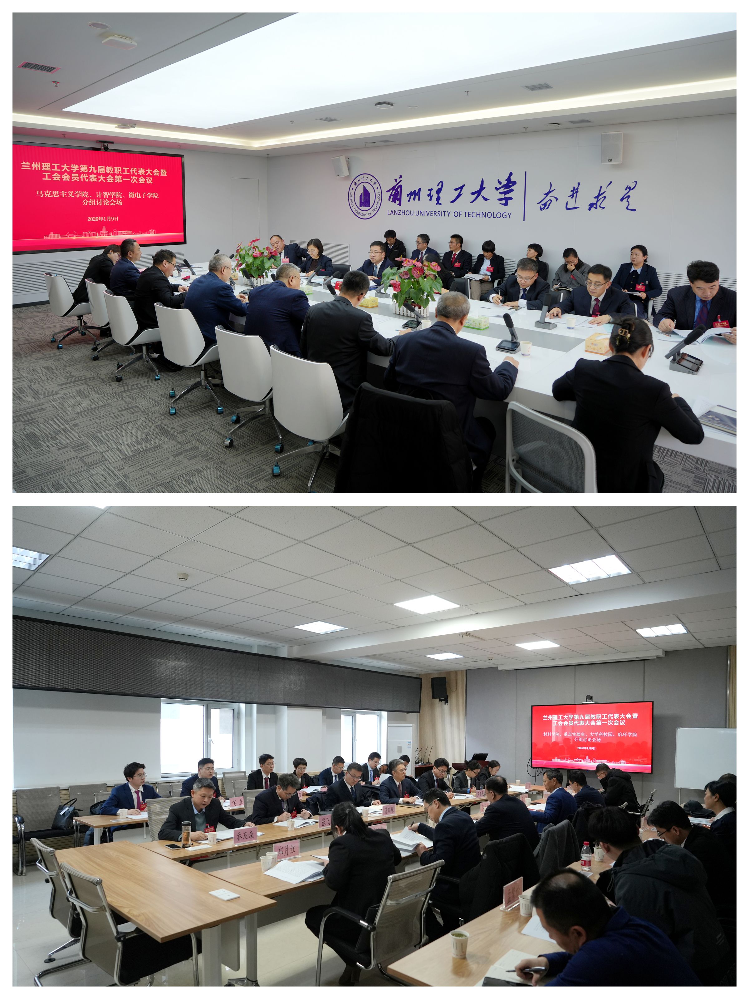 开幕式后,全体代表分11个团组对各项工作报告、第九届工会委员会(教代会执委会)委员候选人、第九届工会经费审查委员会委员候选人建议名单等进行讨论、审议。分组讨论会议后举行了主席团第二次会议,各代表团召集人分别汇报了组内代表们的讨论情况,以及关于学校人才培养、科学研究、校园民生、教代会和工会工作等方面的意见建议。