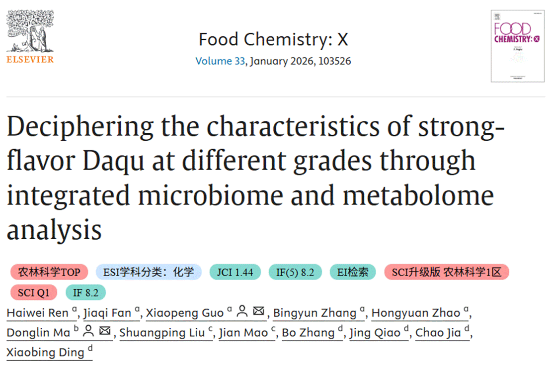 据悉,该研究团队在白酒酿造及其副产物综合利用方面持续深耕十多年,先后在《LWT - Food Science and Technology》《Food Microbiology》等中国科学院一区Top期刊和《食品科学》等卓越领军期刊发表25篇高水平论文,授权3项发明专利,培养硕士研究生10名,在该研究方向逐步获得重要学术影响力,并将承办中国微生物学会酿造分会2026年全国学术年会,为生物工程学科建设发展奠定坚实基础。(撰稿:范佳琪、郭晓鹏;初审:任海伟;终审:常小军)