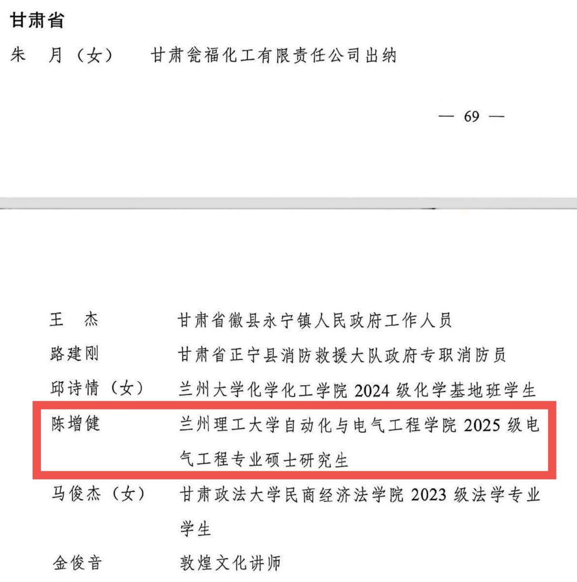 近日,共青团中央印发相关表彰决定,我校自动化与电气工程学院2025级电气工程专业硕士研究生陈增健荣获“全国优秀共青团员”称号。这是共青团中央授予团员的团内最高荣誉,也是对青年人投身中国式现代化建设、助力民族复兴的激励与认可。