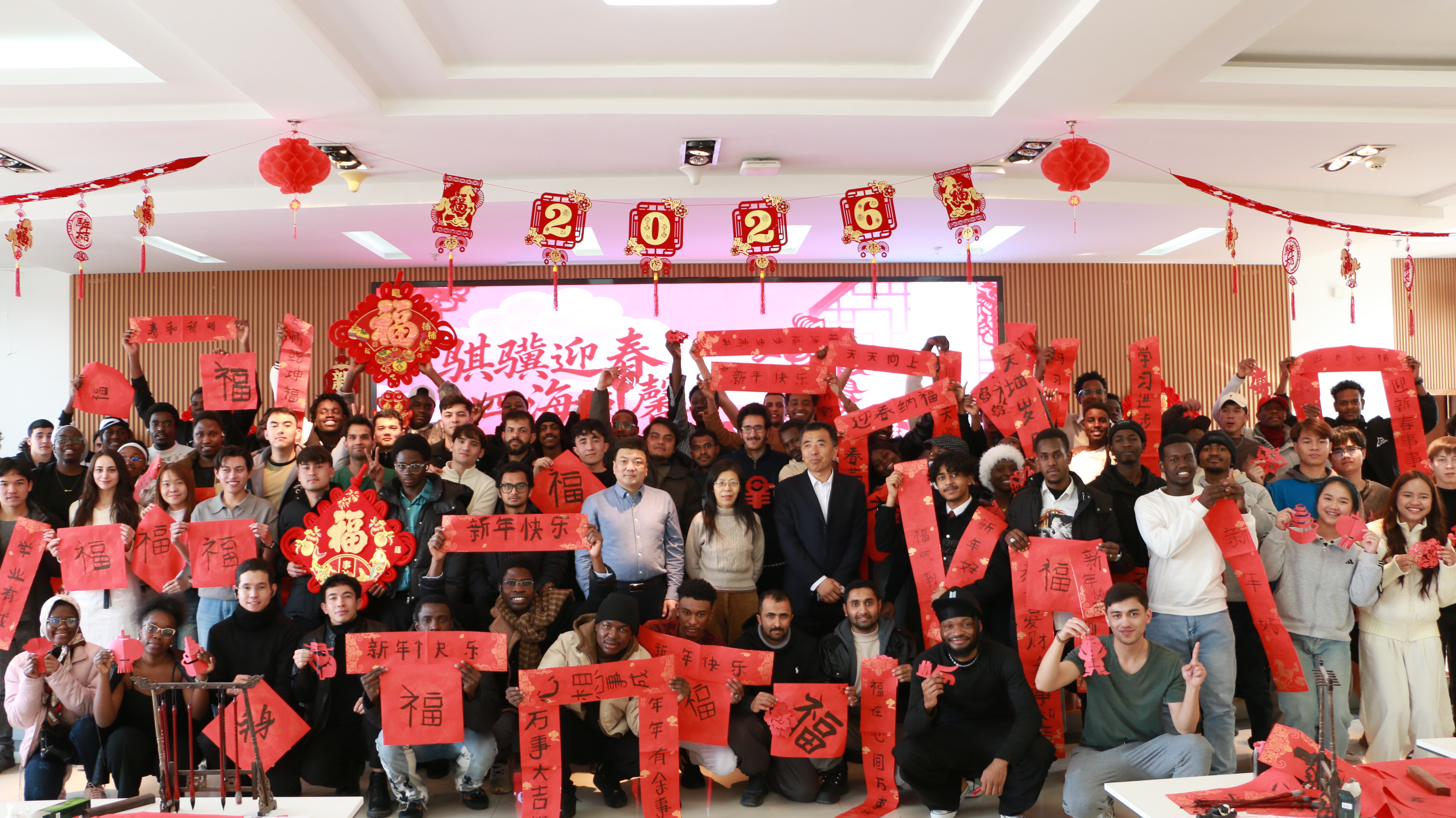为让在校国际学生感受中国春节的浓厚氛围,领略中华优秀传统文化魅力,2月15日,国际教育学院举办“骐骥迎春·四海同馨”国际学生2026年春节主题活动,来自世界各地的国际学生欢聚一堂,共迎丙午马年新春。兰州理工大学副校长郑小平、国际合作部相关人员参加活动。