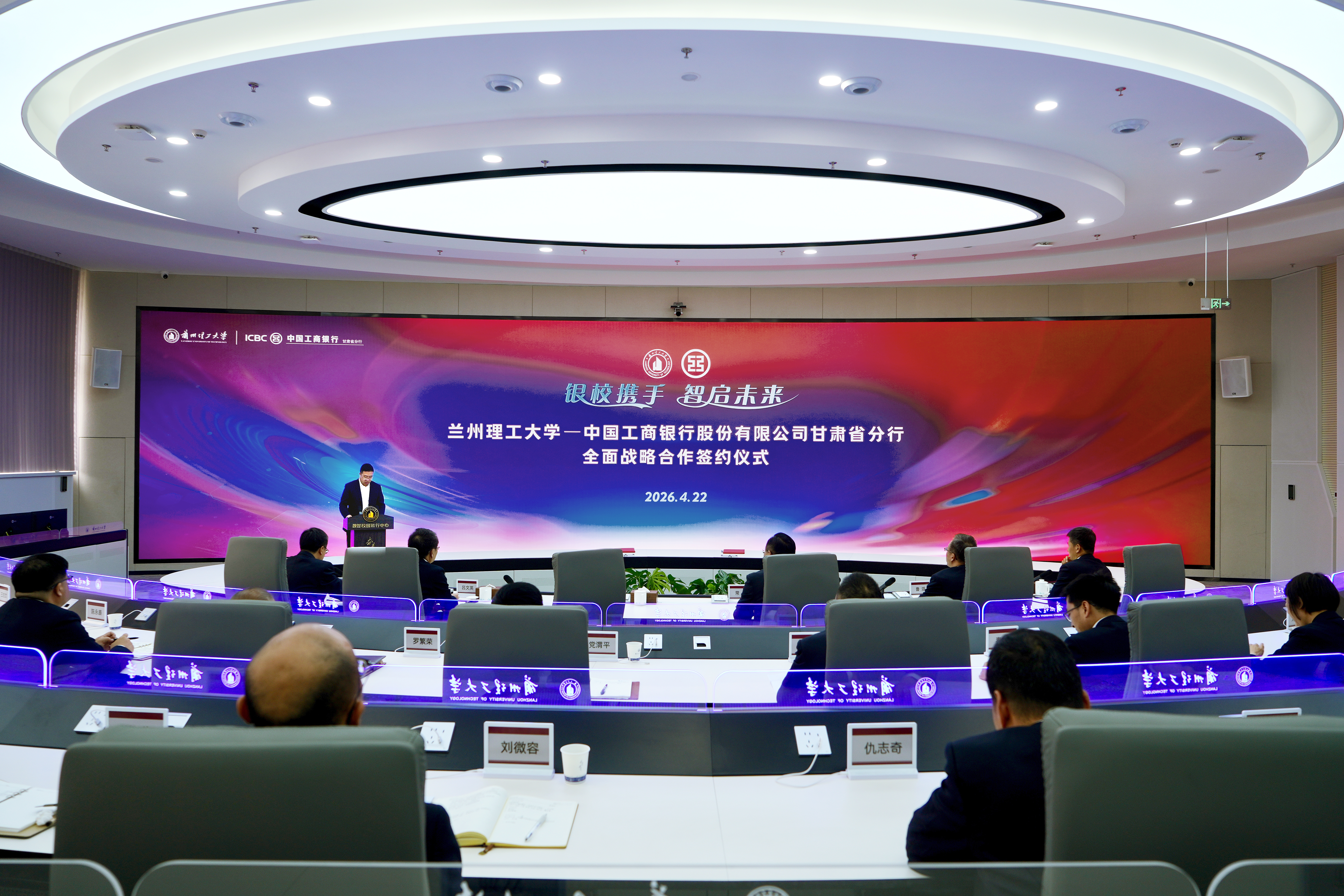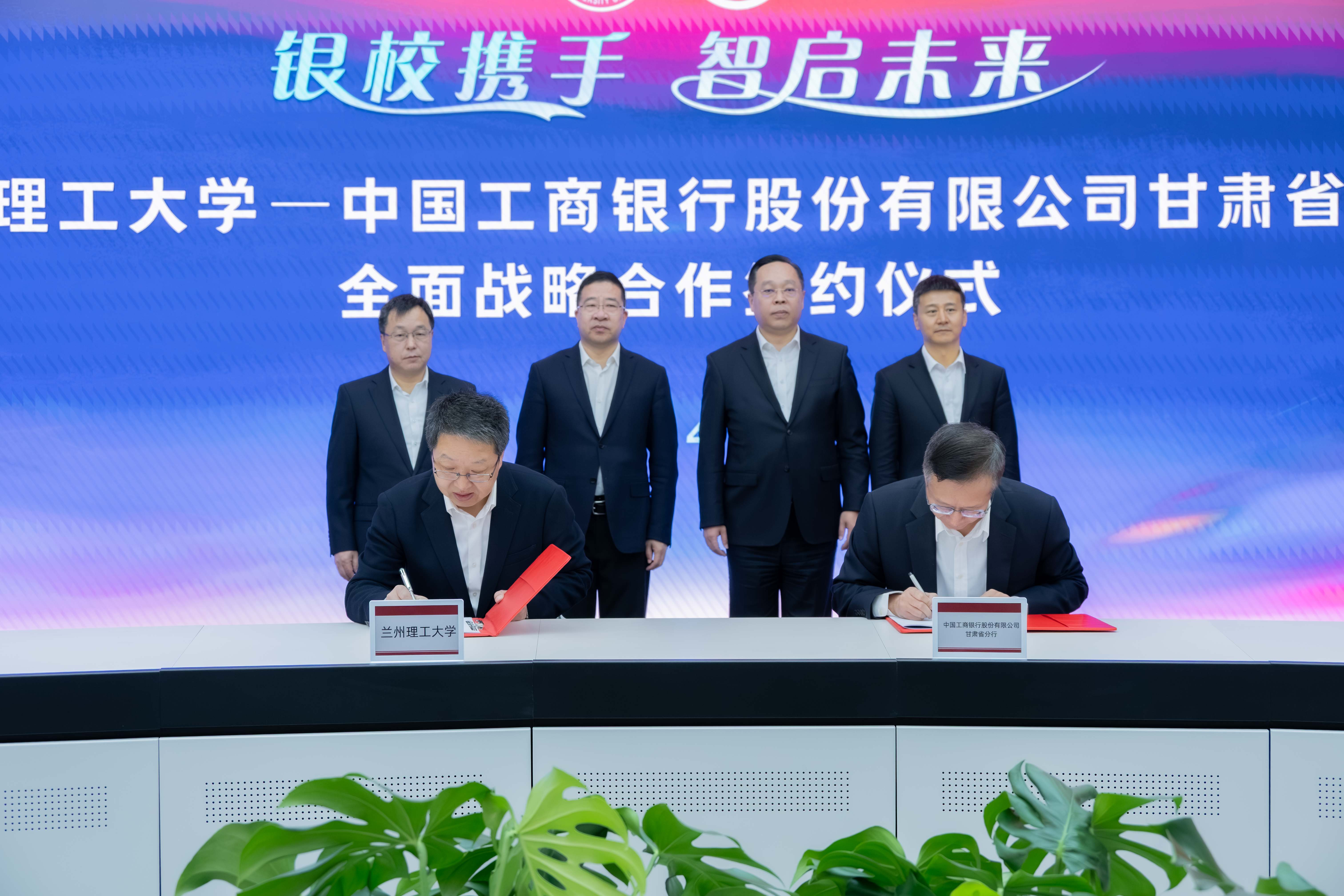 4月22日上午,兰州理工大学和中国工商银行股份有限公司甘肃省分行全面战略合作签约仪式在兰工坪校区数智校园运行中心举行,这标志着双方合作迈入全方位、多层次、战略性发展的新阶段,将为学校优化管理流程、提升服务效能、迈向“数智校园典范校”和“特色鲜明国内一流大学”注入强劲金融动能。学校党委书记赵立香,党委常委、副校长吕文英、韩建平,工商银行甘肃省分行党委书记、行长常江,党委委员、副行长鲁滔,党委委员、副行长、兰州分行行长王建华出席签约仪式。